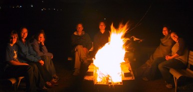 One of the study teams at work. The young folks say, "Who needs sleep when there is a camp fire?"